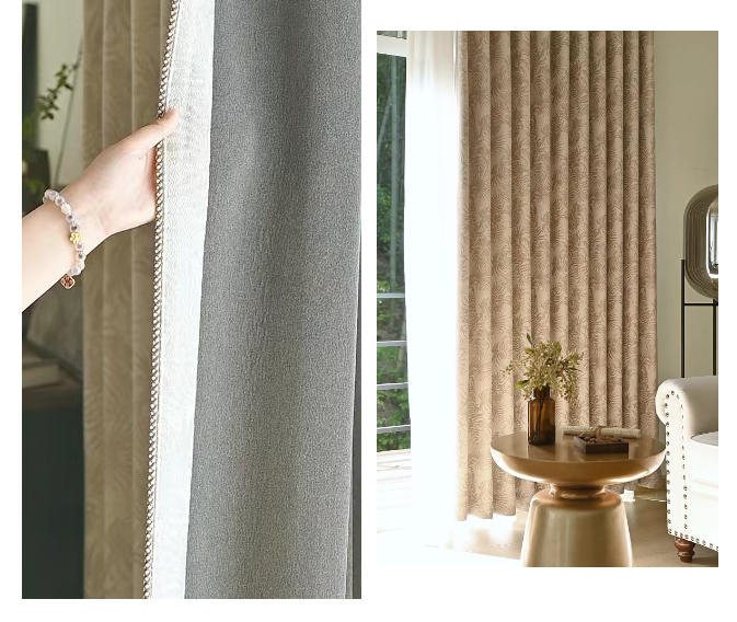 80%遮光率留足了「光影游戏」的空间午后阳光穿过雪尼尔绒纱叶片花纹在地面投下斑驳的影像极了宋人在庭院里看「疏影横斜」的闲趣侧边深咖色绒绳如画龙点睛的飞白笔让整体多了份「不经意的精致」