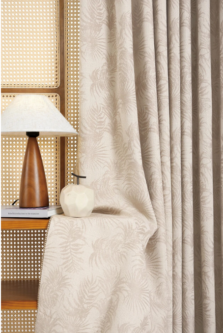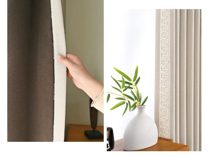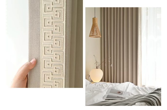 80%遮光率留足了「光影游戏」的空间午后阳光穿过雪尼尔绒纱叶片花纹在地面投下斑驳的影像极了宋人在庭院里看「疏影横斜」的闲趣侧边深咖色绒绳如画龙点睛的飞白笔让整体多了份「不经意的精致」